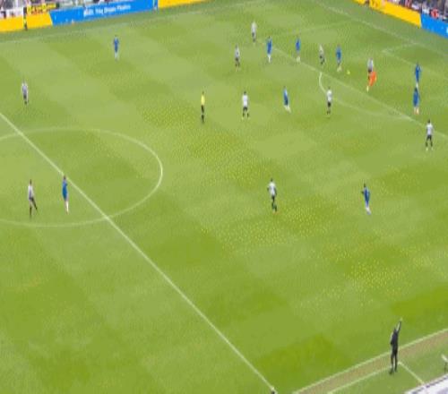 开场仅仅86秒,加纳乔内切之后分球,帕尔默禁区左肋左脚吊射击中顶网。