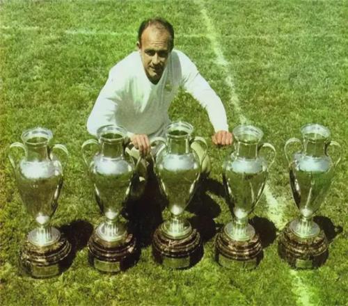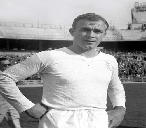 头号球星,绰号“金箭头”的迪·斯蒂法诺,效力皇马11年,8次赢得西甲冠军,5次西甲金靴,5次欧冠决赛都有进球,2次荣膺金球奖。如果换个时代,迪·斯蒂法诺完全可以跟C罗、梅西比金球奖以及各种进球数据。