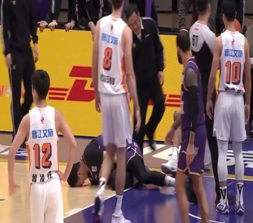 天津客场98-93击败广州龙狮,在比赛第四节还剩5分钟阶段的一次篮下拼抢中,赖俊豪在底线附近和李祥波发生身体对抗,悲催的赖俊豪,在救球过程中身体飞出界外,脑袋直接撞到了场边的广告牌上,一度出现了晕厥的情况。