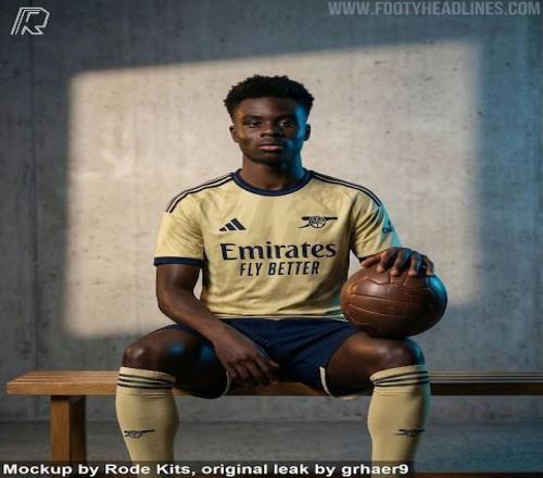 近日,足球装备网站Footyheadlines曝光了阿森纳2026-2027赛季的第三套球衣。这款二客球衣以浅黄色为主色调,搭配海军蓝色的点缀和闪电图案,给人一种熟悉的感觉,仿佛回到了阿森纳历史上的经典球衣设计。