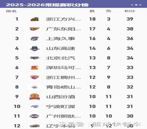 第9名则是山西队,这一轮比赛他们大比分输给了浙江队,球队战绩也变成了10胜11负,胜率已经不足5成了。第10名则是宁波队,在与辽宁队的关键卡位战中,宁波队最终大胜对手,成功将战绩提升到10胜11负,排在第10名。广州队则紧随其后,他们则以10胜10负的战绩,排在积分榜第11名。而积分榜第12名则属于辽宁队,他们这一轮输给宁波队后,战绩变成9胜12负,季后赛形势变得岌岌可危。