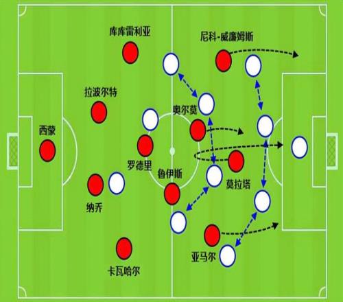 首先是中锋莫拉塔,他在上届欧洲杯上起到了至关重要的作用。通过他的回撤反哺和串联,带来攻防转换。另外一方面,左边锋的尼科威廉姆斯是一个小支点,他可以直接接长传球去用力量碾压对手的边后卫,同时用速度去冲击对方中卫的身侧。