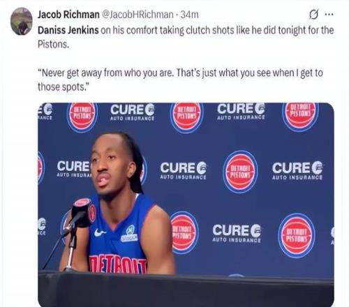 然后,身披活塞球衣的詹金斯登场了。
