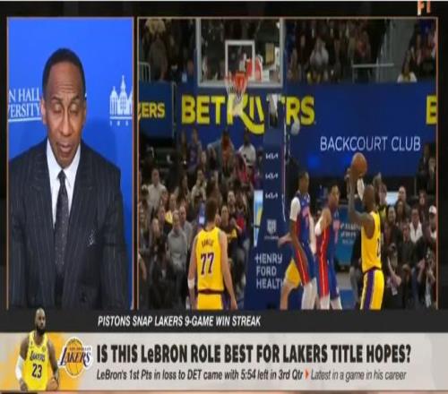 在对阵活塞的比赛中,詹姆斯只出手10次,外线投篮2次,其余八次都在三秒区内可他只获得3次罚球,而且这场比赛有两个争议判罚,第一节詹姆斯明显被打手但活塞挑战成功,第四节詹姆斯封盖后活塞则挑战成功是一个干扰球。41岁的勒布朗多次被裁判针对。