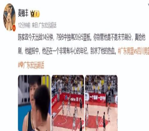 就在所有人都以为,这场封神表现能让陈家政在广东男篮获得更多出场机会时,主教练杜锋的赛后采访,却给所有人浇了一盆冷水。
